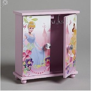 Girl's Princesses Armoire Style Jewelry Box, Disney Cinderella, Belle Snow White Description:Now she can store all her royal jewels in one place with this cute Disney Princesses themed armoire style jewelry box.